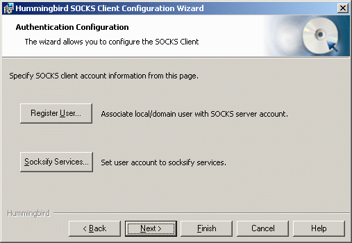 The Hummingbird Socks client can be installed on any client machine needing to use the Socks protocol. It enables TCP and UDP client applications to traverse a Socks firewall. The Socks client can automatically intercept the networking calls from WinSock applications and redirect them through the Socks server.